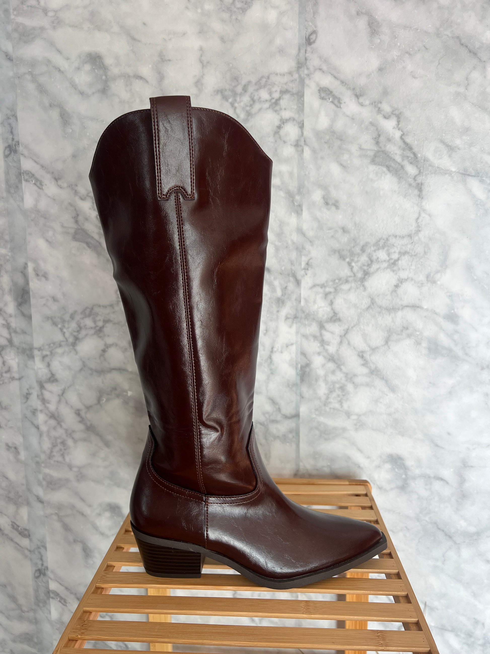 Bota alta tacón polipiel marrón