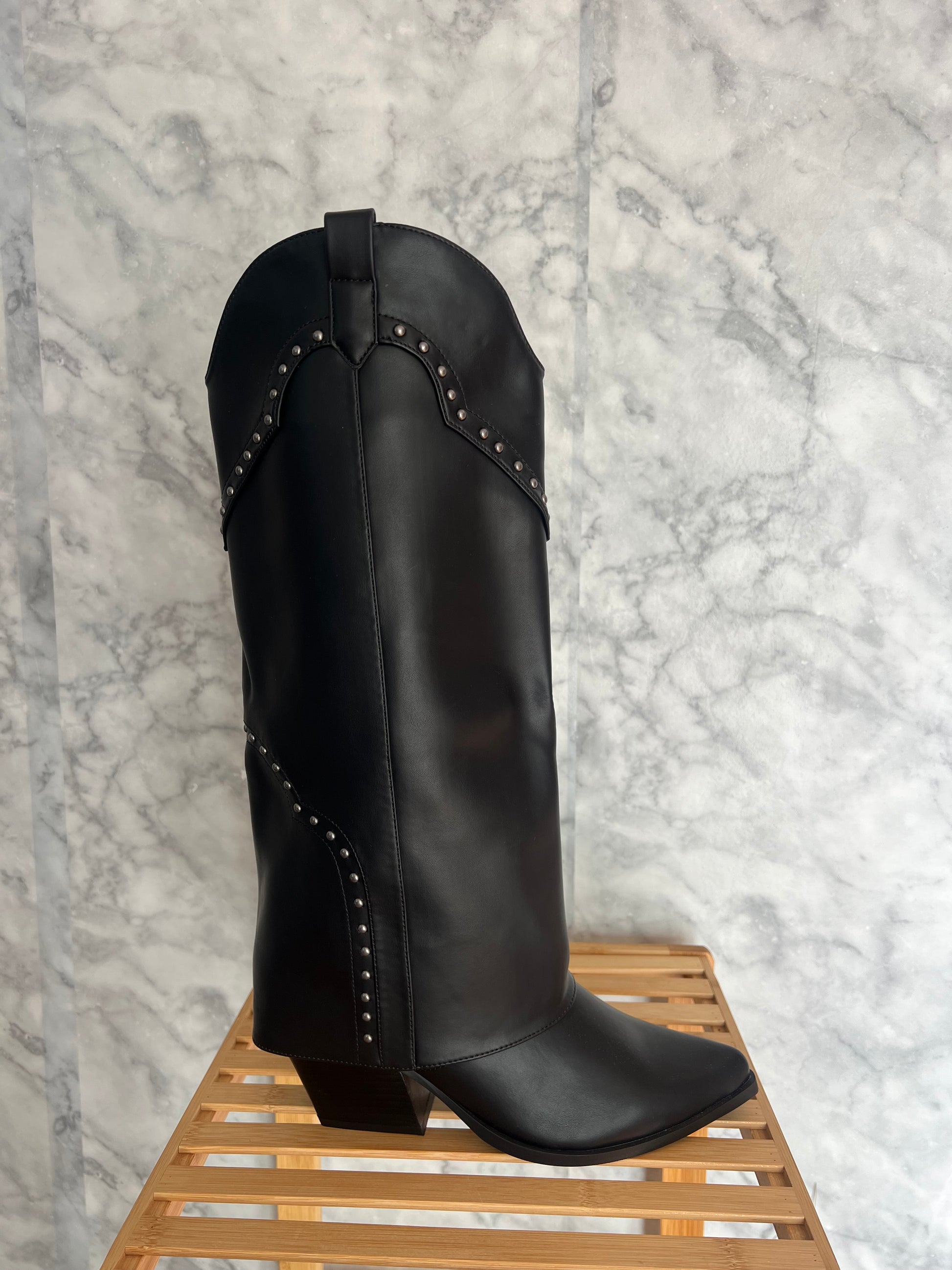 Bota alta tacón polipiel forro tachuelas