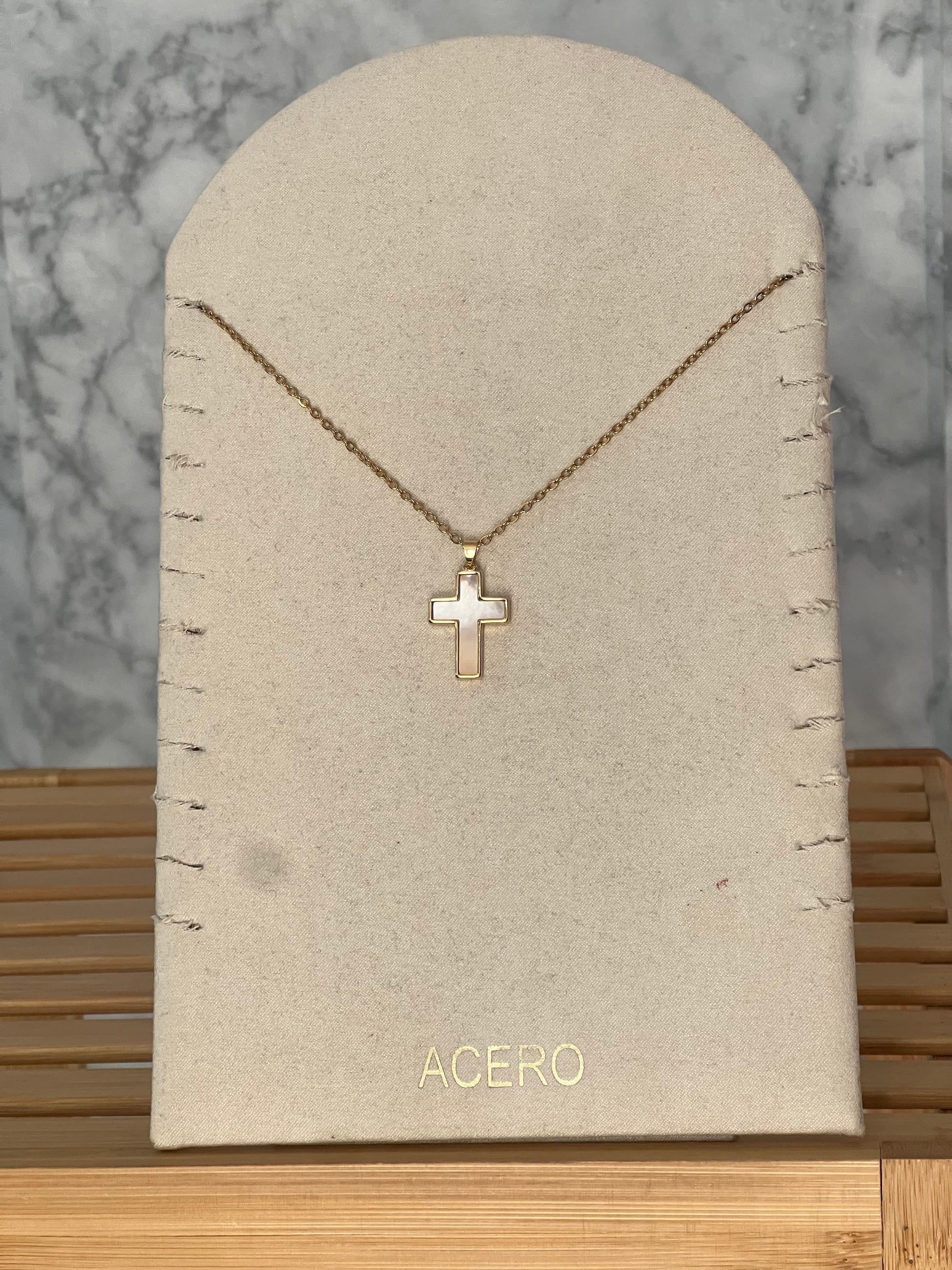 Colgante cruz nácar acero inoxidable
