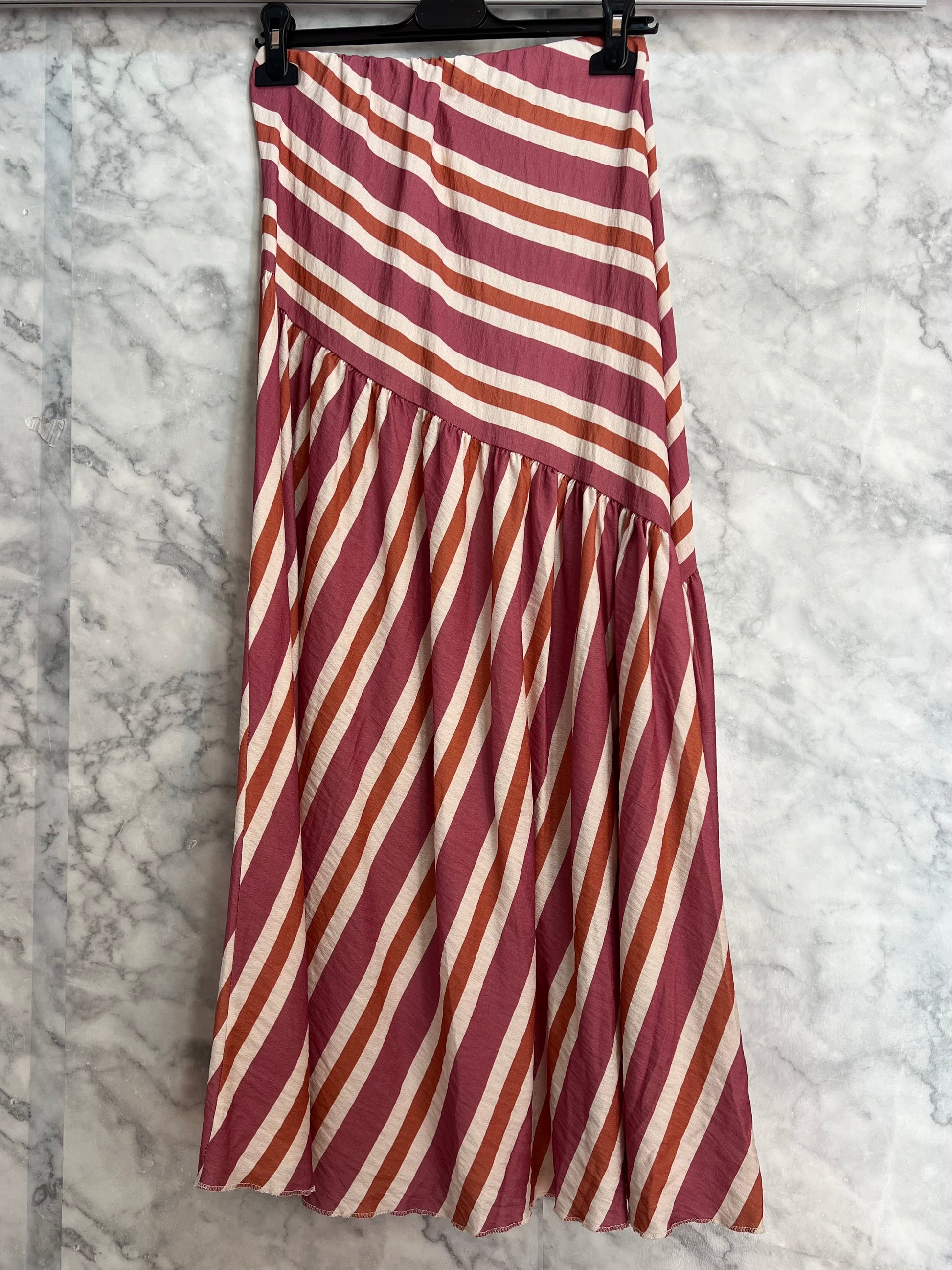 Falda asimétrica rayas rosa